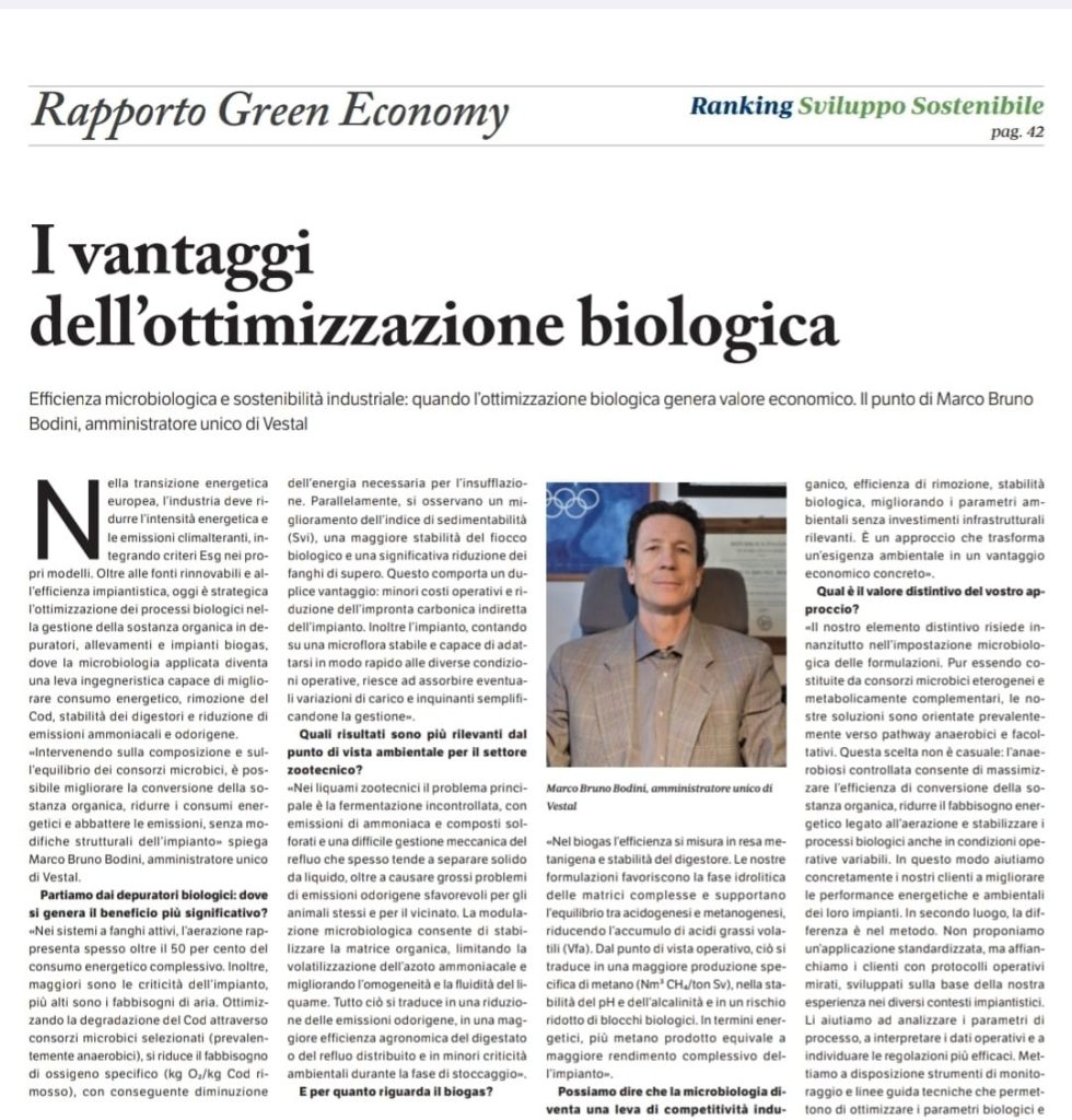Efficienza microbiologica e sostenibilità industriale: quando l’ottimizzazione biologica genera valore economico. Il punto di Marco Bruno Bodini, amministratore unico di Vestal