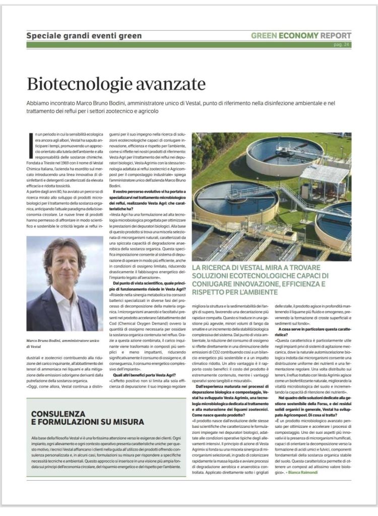 Felici di essere su Green Economy, la rivista punto di riferimento per l’innovazione e la sostenibilità ambientale dove raccontiamo la nostra missione: offrire soluzioni microbiologiche avanzate per il trattamento dei reflui, la valorizzazione della FORSU e la promozione di un’economia circolare realmente sostenibile.